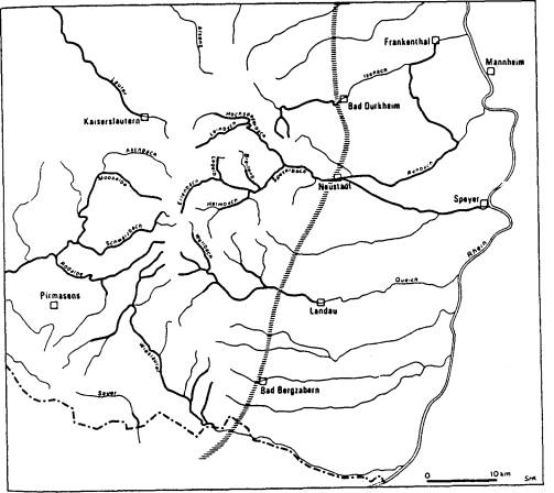 Verhältnisse seit dem Mittelalter. Die Queich gabelt sich etwa einen