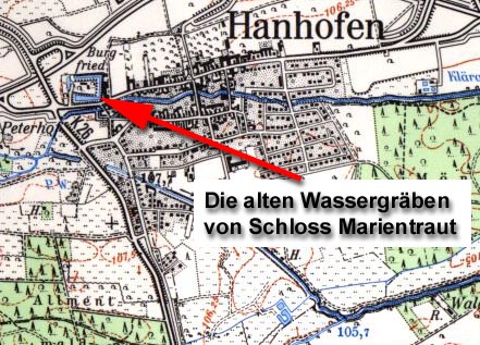 zweiten Burg (1467) öfters genannte Schloss Hanhofen, auf dem Gelände der