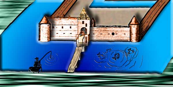 Die breiten Wassergräben wurden zur Fischzucht verwendet. Im großen Burghof