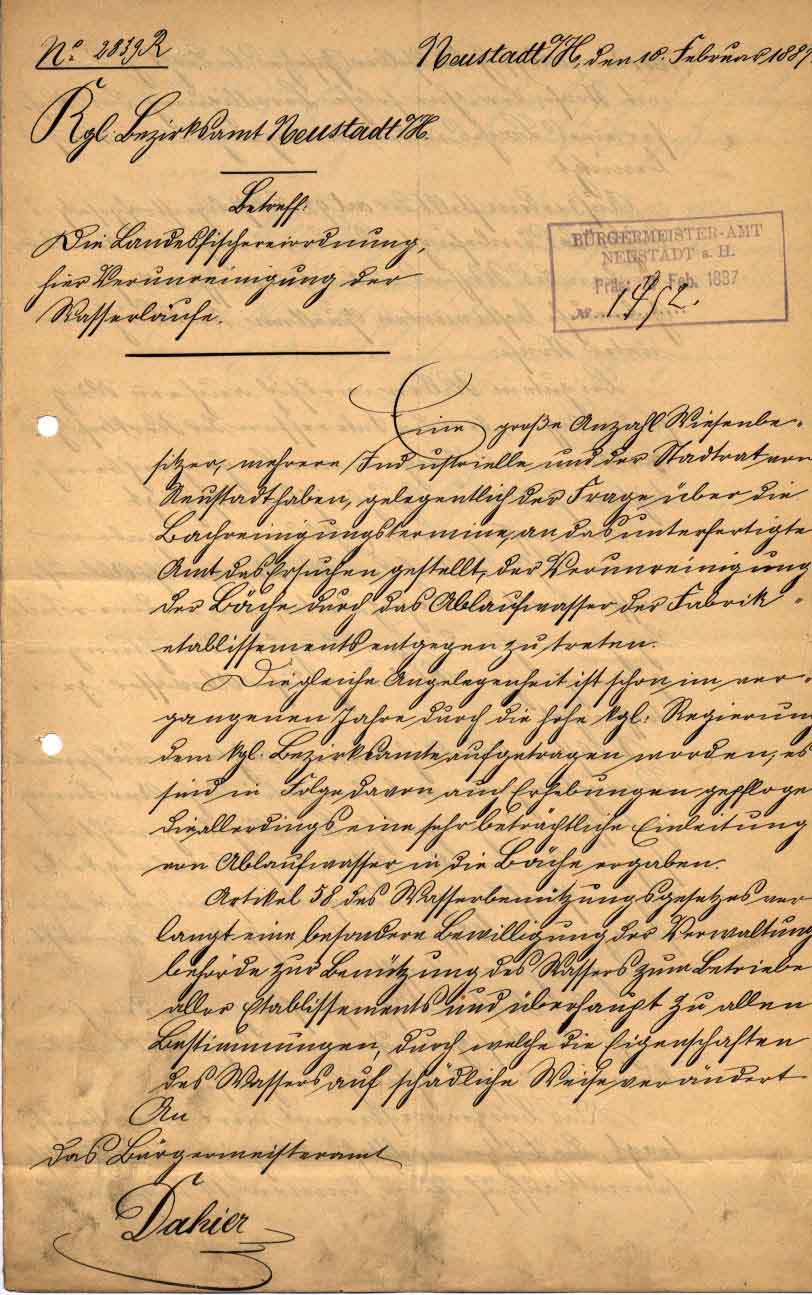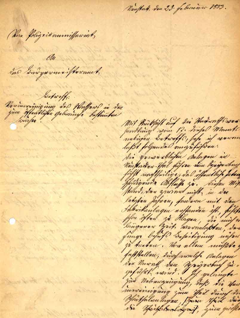 seine Stellung zur Sache, nachdem die Gemeinde Neustadt a./H. an der