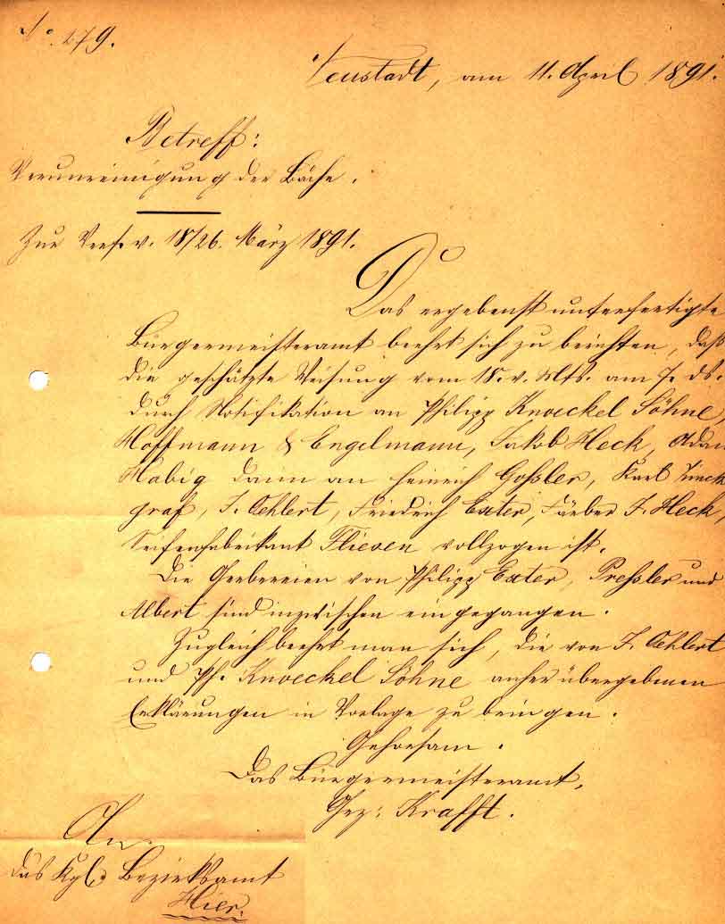 Beschwerde des Bürgermeisteramtes vom 2. ds. Mts. ist wahrscheinlich gegen