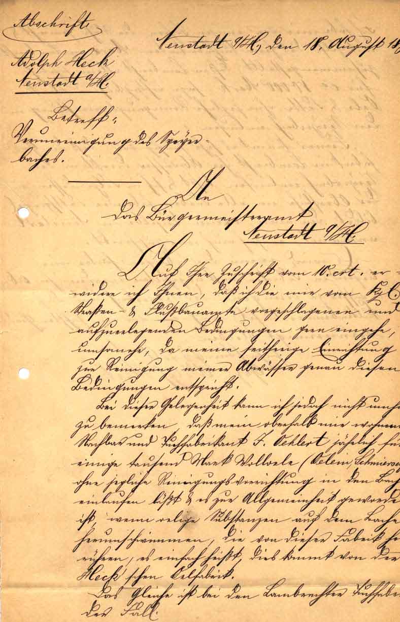 Beschwerde des Herrn Heck über Verunreinigung des Wassers ist nur