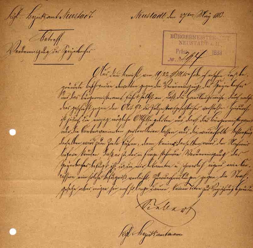 von letzterer Behörde mit Randverfügung vom 17.Sept.1883, wurde unter