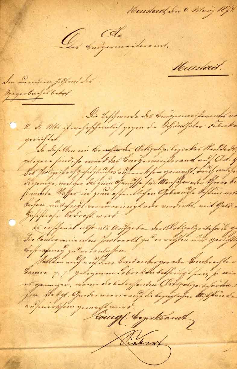 auf, jede Verunreinigung des Speyerbaches zu unterlassen.