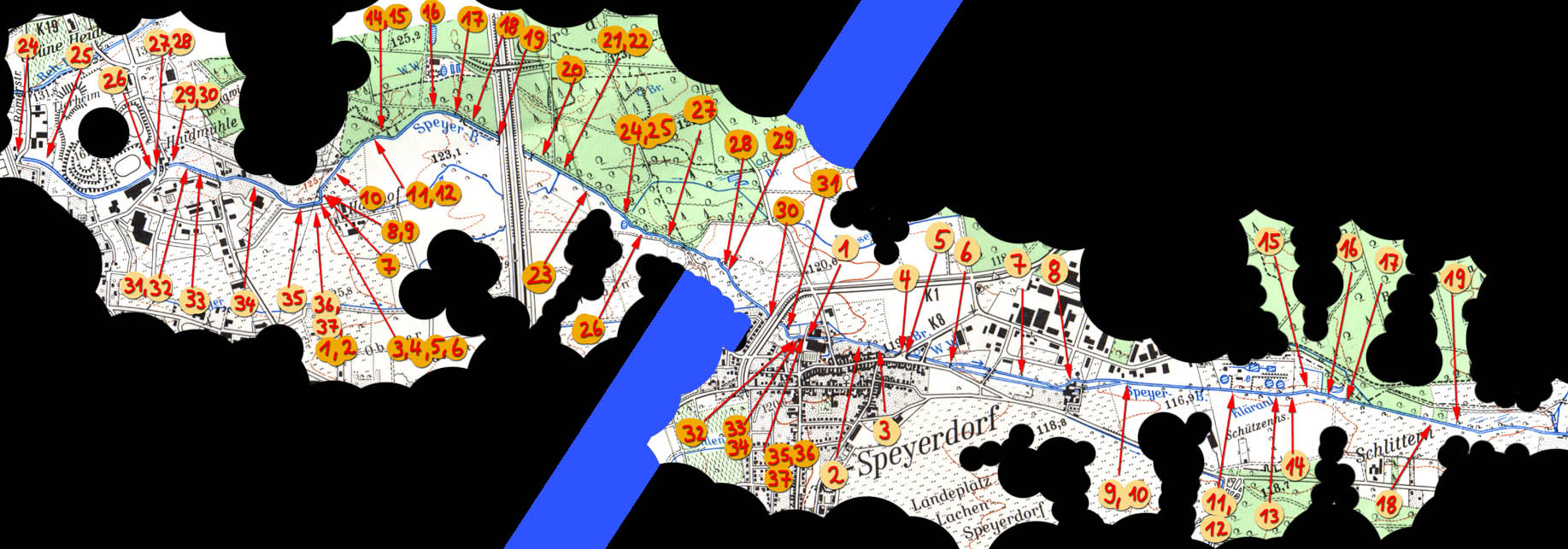 Die Karte mit den entspechenden Bildnummern ist von links nach rechts zu lesen